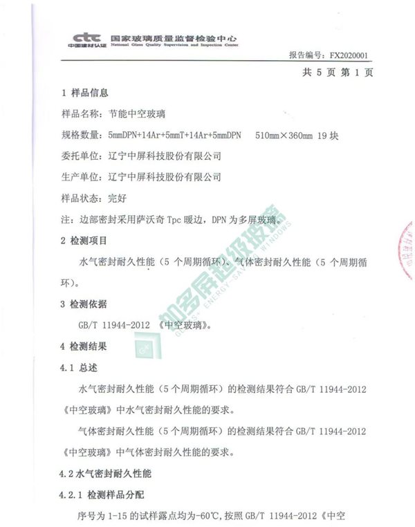 多屏中空作为加多屏核心产品,是近年成为门窗业黑马,尤其在阳光房、被动房领域的应用,倍受用户的青睐。2018年年初加多屏实施品牌战略大升级,拿出28片2个大小不同规格的多屏中空样片(样品厚度/结构:5DPN+14Ar+5T+14Ar+5DPN),报送到国检中心主动接受两项“大考”。