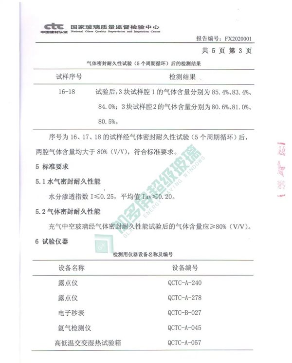 28块多屏中空被送到国家玻璃质量监督检验中心(以下简称:国检中心)的“高温炉”里,经过一年四季5个气候循环的破坏性磨厉,寿命由原来的50年增至75年,成为目前国内首家玻璃“寿星”。按GB/T8484-2008《被动房透明部分用玻璃(Jc/T2450-2018)》标准对多屏中空做的传热系数检测,k值达0.56,连同检验的其它各项光学数据,均符合被动房玻璃在严寒地区的应用标准。